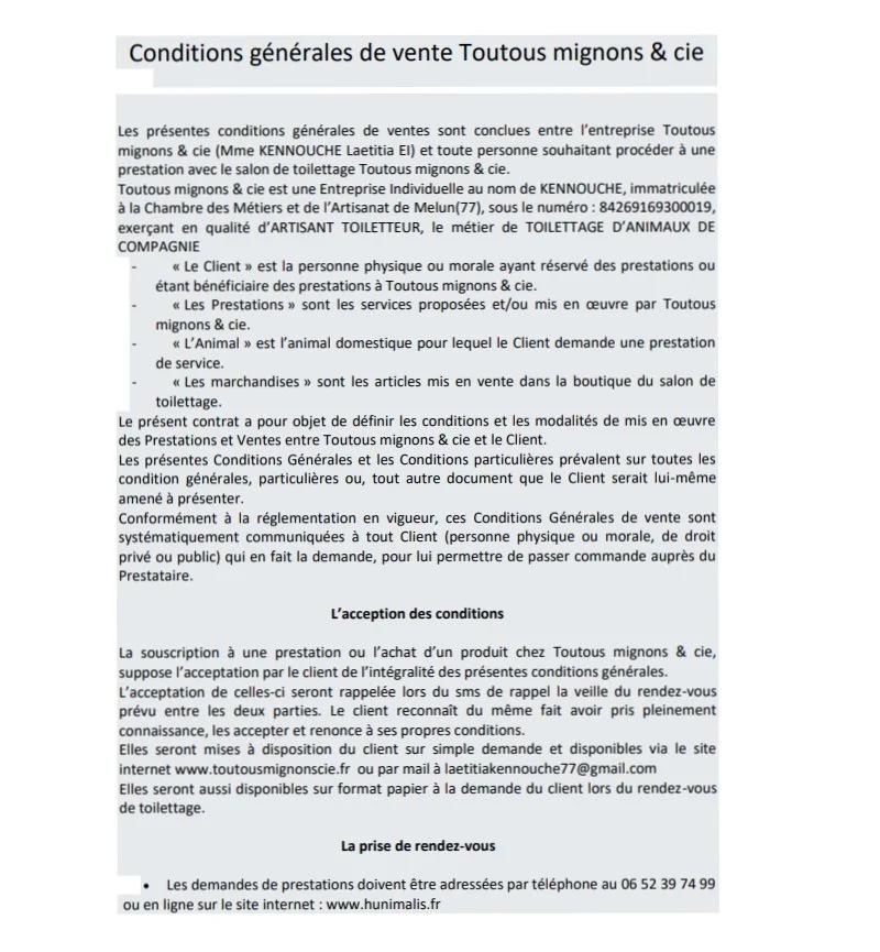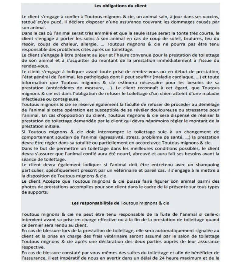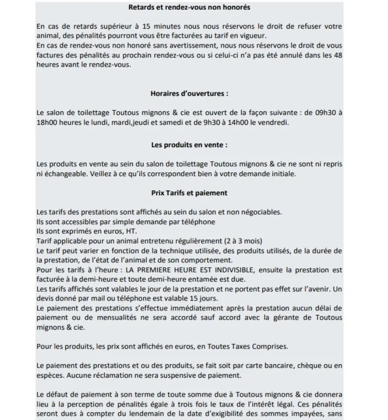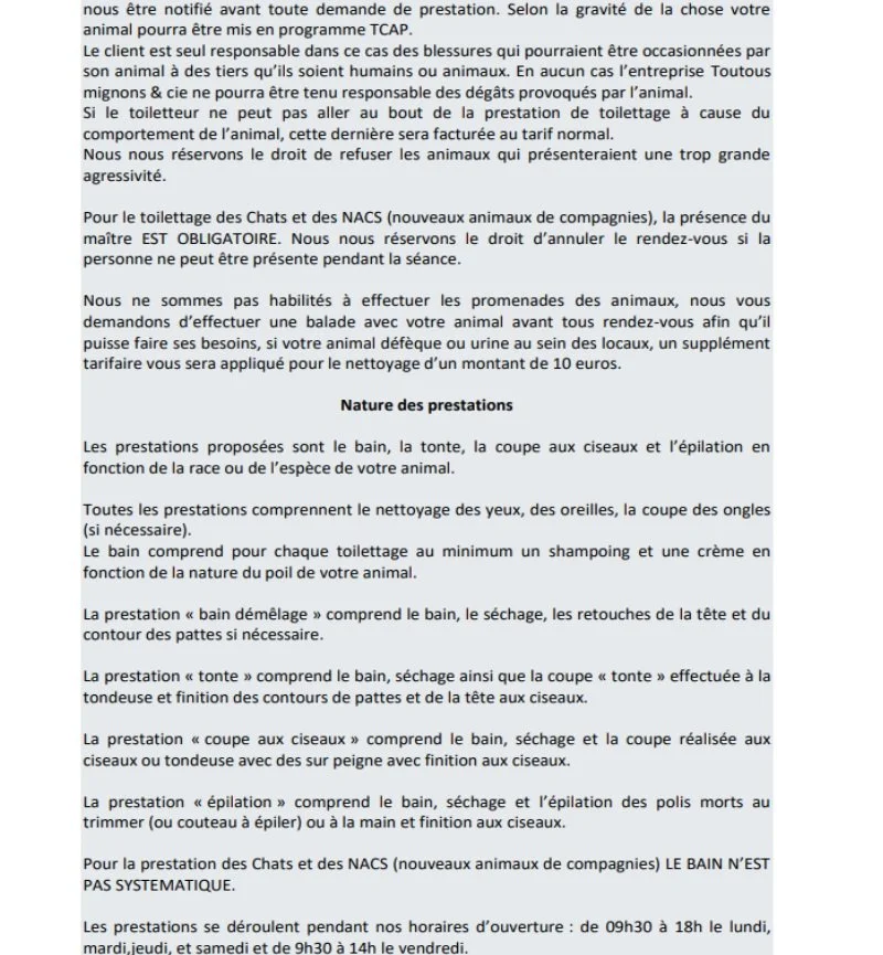 Tarifs selon race, état du poils, noeuds ….