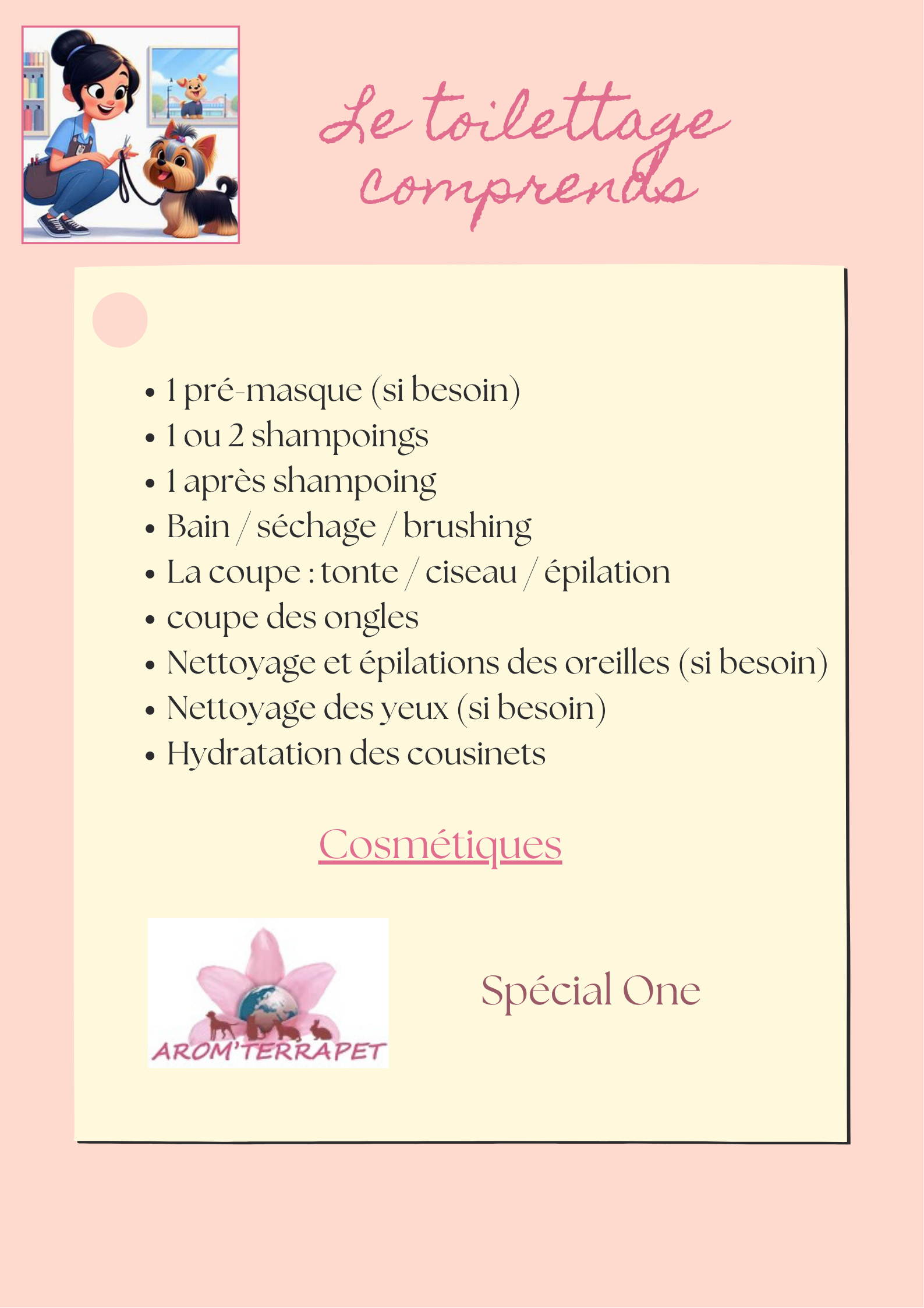Toiletteuse titulaire du CTC (certificat des toiletteurs canins).
